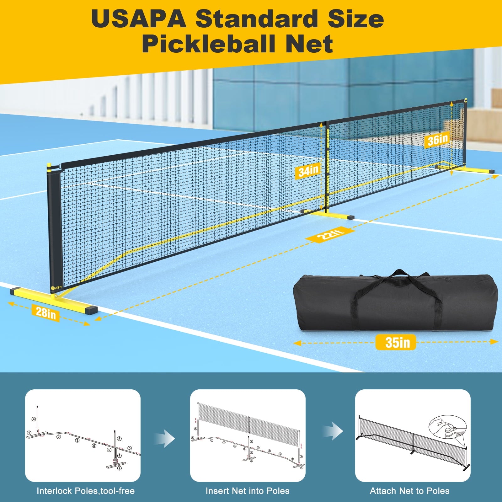 Elevate your pickleball game anywhere with the GIKPAL Portable Pickleball Net. This 22 FT Pickleball Net System is designed for easy setup in driveways and backyards, complete with a convenient carrying bag for effortless transport and storage. Ideal for players of all levels, it combines durability with portability, making it perfect for outdoor play. Transform any space into a pickleball court and enjoy hours of fun with family and friends!