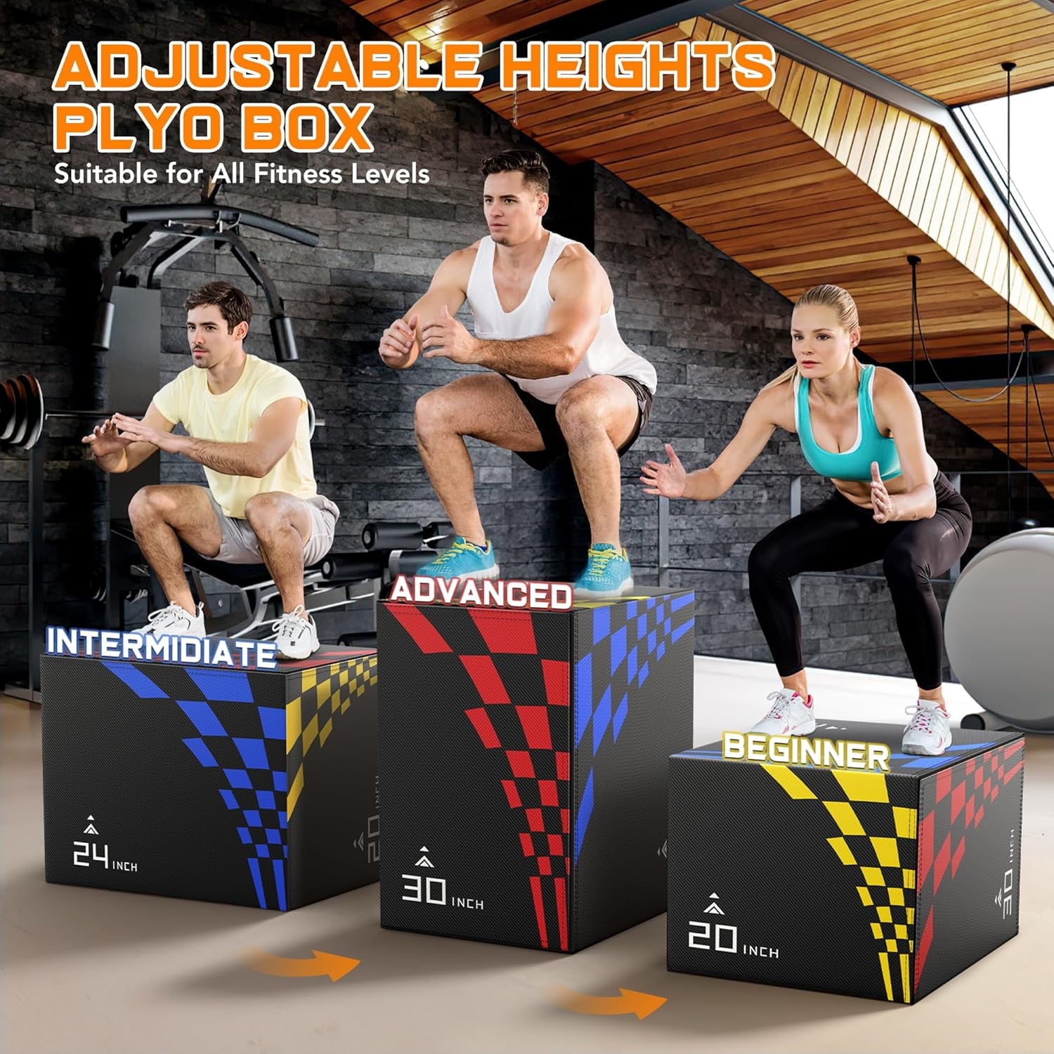 3 IN 1 Adjustable Height: Each box offers 3 different height options (16x20x24 in), allowing you to customize your workout to meet the personal needs of all fitness levels according to the difficulty level of your choice.