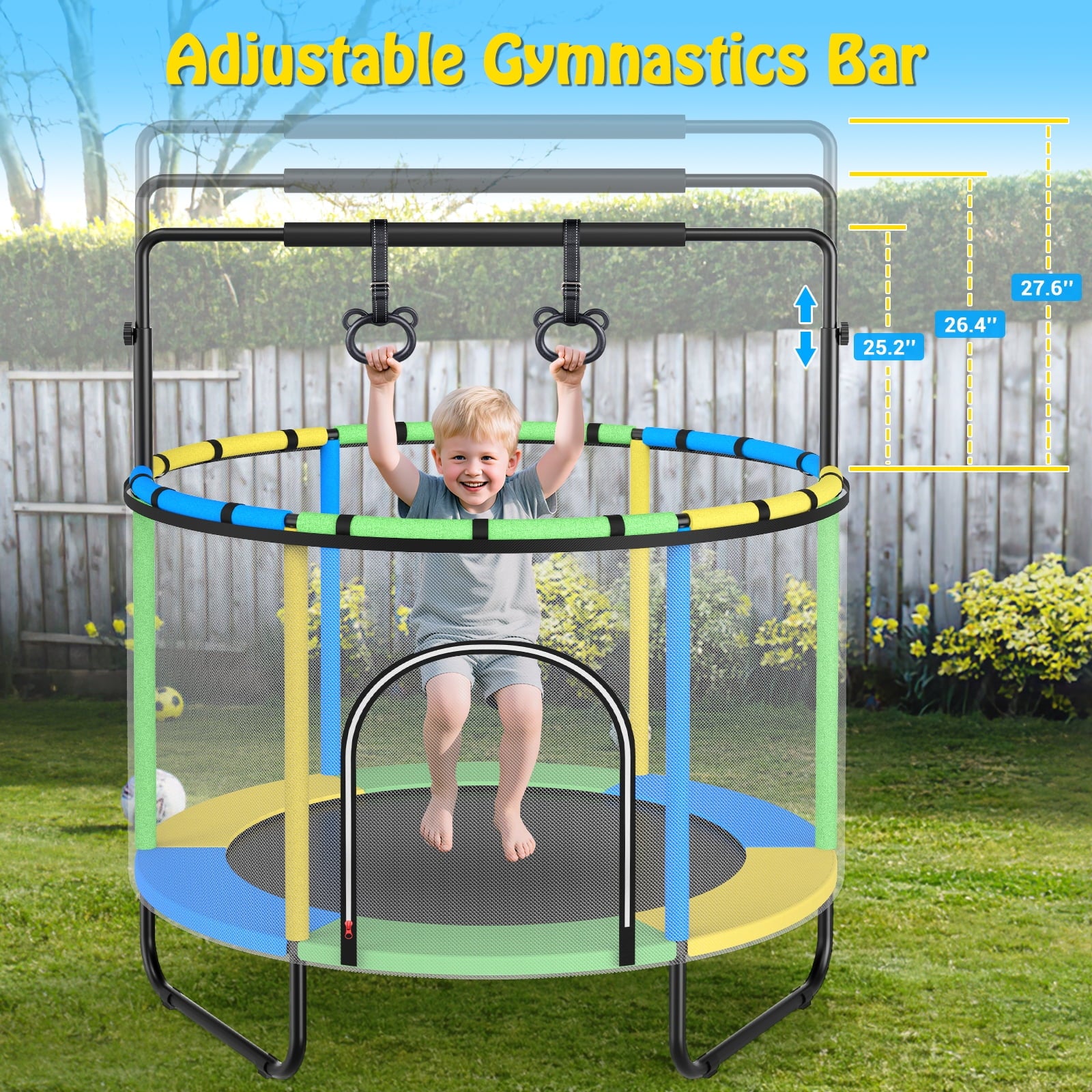 • 📏 3-Level Adjustable Bar Grows With Your Child: Easily adapt the bar to 3 heights (64", 67", 70") as your little one grows taller. Enjoy years of safe bouncing without needing a new trampoline.