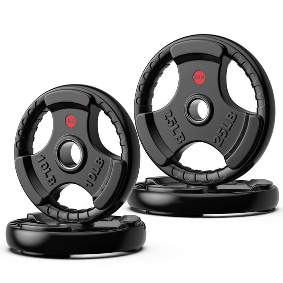 • Comfortable and Convenient: Each plate has 3 openings with strips for an easy and secure grip when loading and unloading the weights. Labeled in LB for easy recognition.