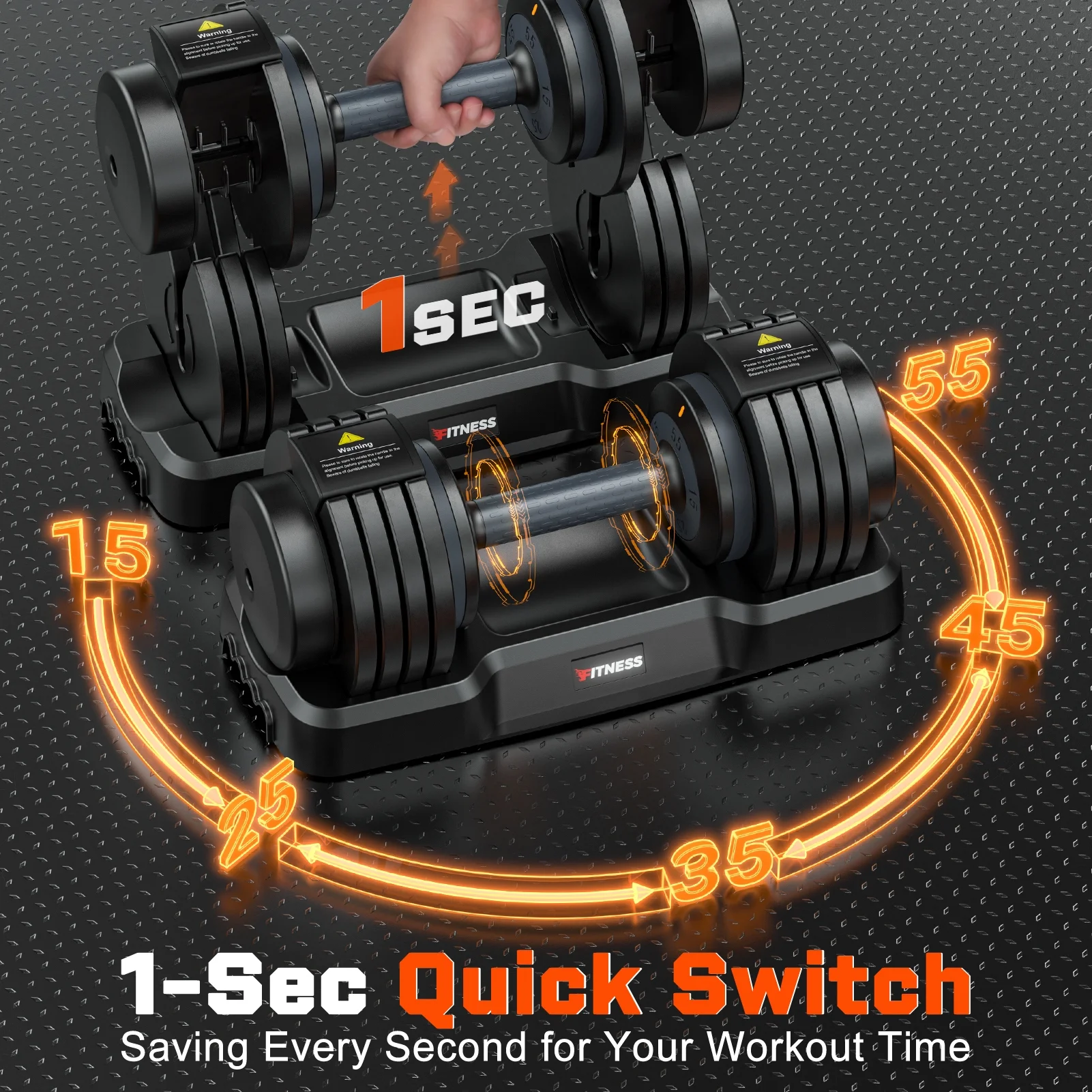 GIKPAL Adjustable Dumbbells,55LB for Home Gym Exercise & Fitness, Fast Change Weights with Anti-Slip Handle, 5 Weight Options for Full Body Workout Suitable Men/Women