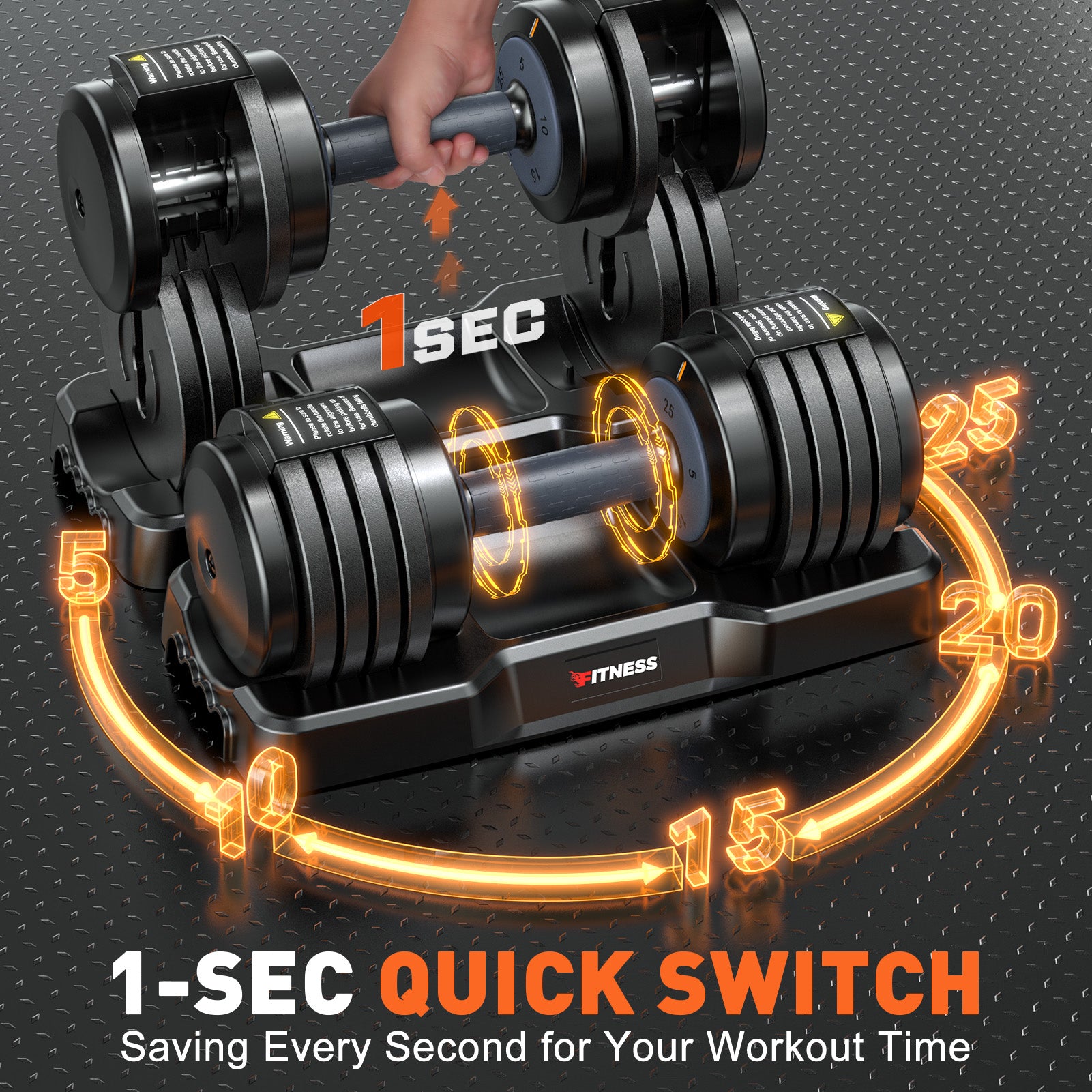 • 【5-in-1 Dumbbell Set】 Each dumbbell offers 5 weight options (5 lbs, 10 lbs, 15 lbs, 20 lbs, 25 lbs), freely adjustable from 5-25 lbs, meets the needs of both beginners and advanced users.