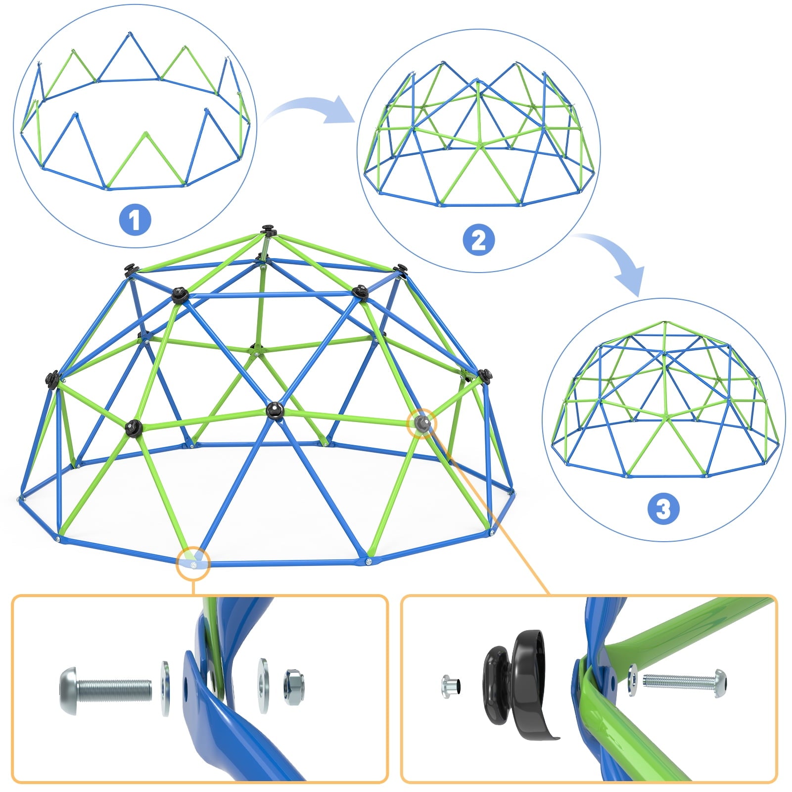 • Quick and Easy Assembly:Setting up your outdoor play equipment is a breeze! This climbing dome comes with a detailed instruction manual and all necessary hardware, allowing adults to assemble it in just 20-30 minutes. No professional help is needed, making it a hassle-free addition to your backyard.