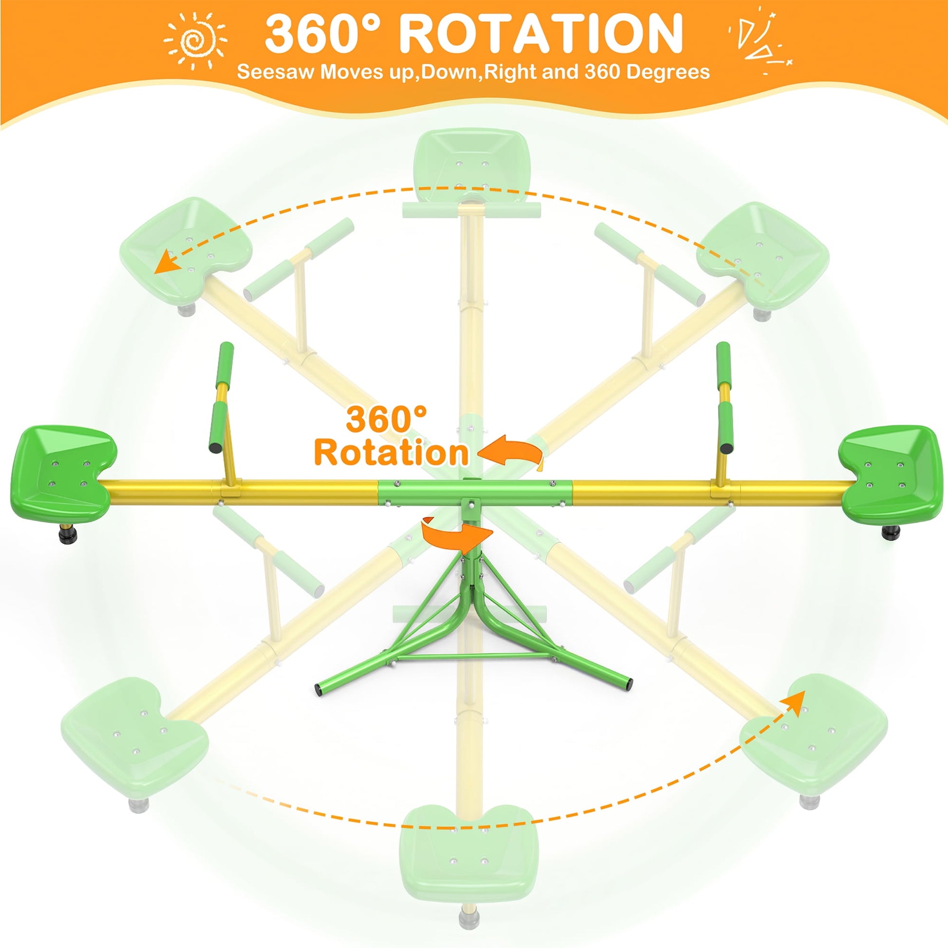 • ✨ 360-Degree Swivel: Elevate the fun with the added 360-degree swivel feature. Unlike traditional seesaws that only move up and down, this innovative design allows for circular movement, offering a merry-go-round experience.